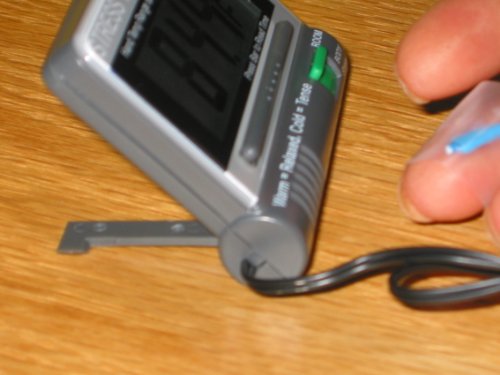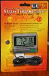 Attractive Hi-Tech look. High Contrast LCD display, 3/4ö high. Displays temperature to the nearest 0.1. Thermistor wire length - 10 ft. Monitors both body temperature and room temperature. Easy to use IN/OUT Switch. Temperature updates every 2 seconds, Accuracy +/- 1.80 F, Displays Fahrenheit or Celsius Temperature. Electronic Quartz Accuracy. Temperature range 58 F to +158 F. Features - Digital Clock, Desktop stand that tilts and thus allows for easy reading,