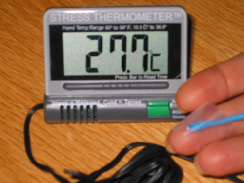 Watch your temperature plummet 10 degrees by just thinking about your bossy mother. Be amazed as it surges 6 degrees when you talk about your great vacation in Bali. Marvel as your temperature rockets 22 degrees when you listen to a relaxation audio CD.